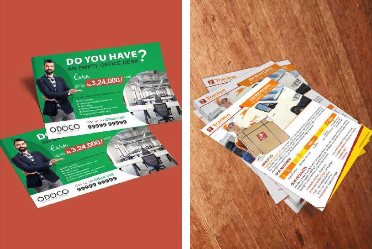 Flyers are small leaflets which are handed out to advertise your products and services during an event or an offline Ad campaign. They are one of the most pocket friendly marketing collaterals suited especially for startups or SMEs to reach their prospects. Flyers are best for local distributions where your stores are located.